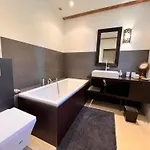 В ванной комнате также есть отдельный туалет и душ. Для удобства гостей предусмотрены фен и полотенца.